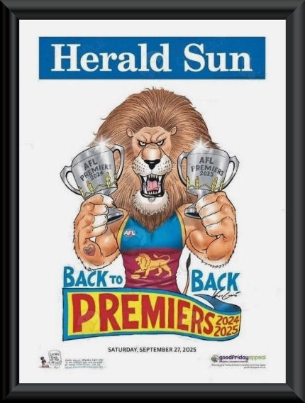 Brisbane Lions 2025 framed Mark Knight Premiership poster